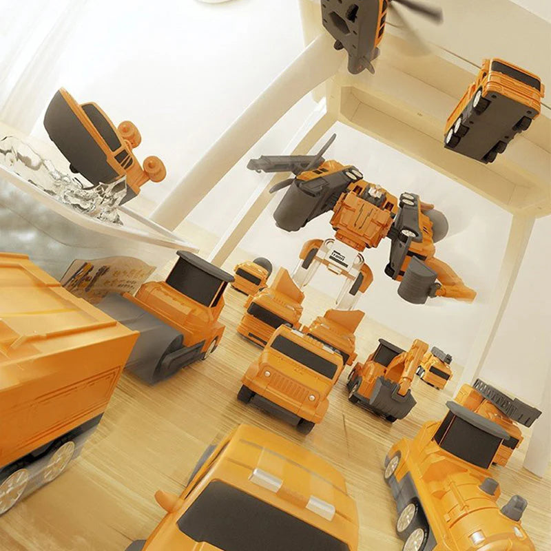 TRANSFORMÁCIA PROJEKTU: Vozidlá v sade, ako sú nákladné autá, vysokozdvižné vozíky, bagre atď., je možné kombinovať do robotov pre nekonečnú zábavu a objavovanie.