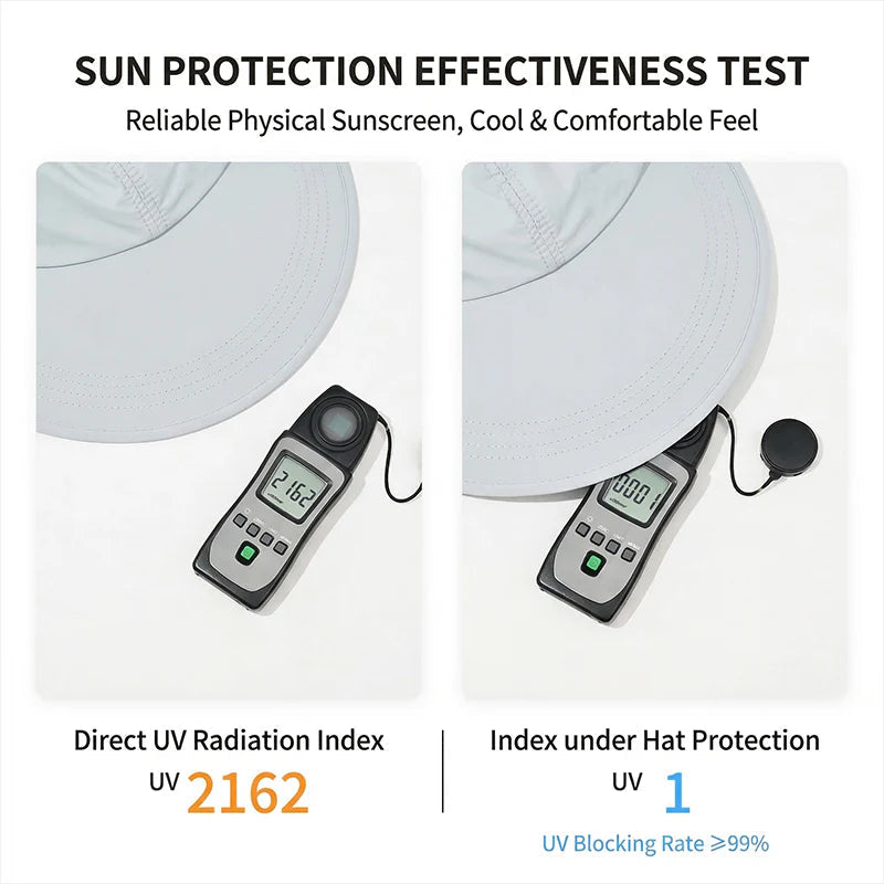 Vynikajúca ochrana pred slnkom – na rozdiel od tradičných klobúkov náš dizajn so širokým okrajom úplne zakrýva tvár a boky tváre, čím účinne zabraňuje spáleniu pri dlhších aktivitách vonku.