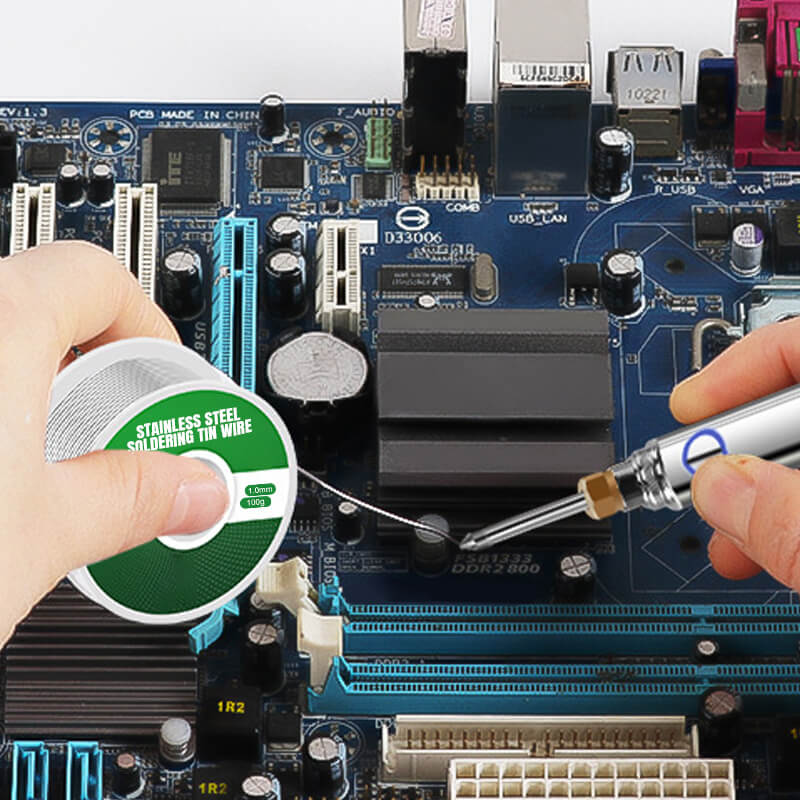 Náš lehčí pájecí drát je vyroben z vysoce kvalitní a vysoce čisté pájecí suroviny s přídavkem 2,2 % speciálního tavidla na bázi běžné slitiny cínu. Jeho vnější kruhové složení slitiny je cín-olovo, speciální bezolovnaté tavidlo je rovnoměrně vpraveno do střední části slitiny cínu a v jádru cínu nedochází k přerušení tavidla. Během pájení pomáhá vysoce čistý materiál zpomalovat oxidaci, což vede k rychlejšímu toku cínu a minimálním zbytkovým nečistotám.