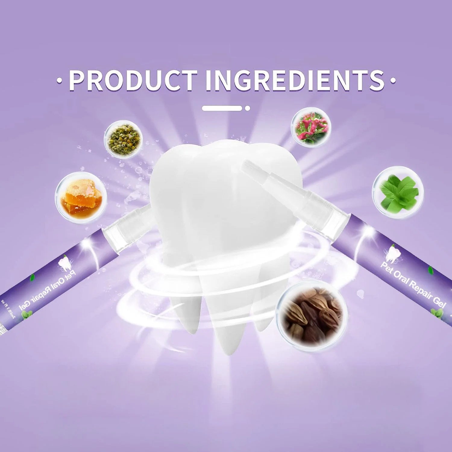 Ako zubár pre domáce zvieratá, ak má váš maznáčik zubný kameň, infekcie, škvrny alebo iné problémy s ústnou hygienou, odporúčam Pet Oral Restorative Gel. Obsahuje rôzne bylinné extrakty, minerály, vitamíny a organické zlúčeniny, ktoré pomáhajú rozpúšťať stvrdnutý zubný kameň, odstraňovať ho a predchádzať infekcii.
