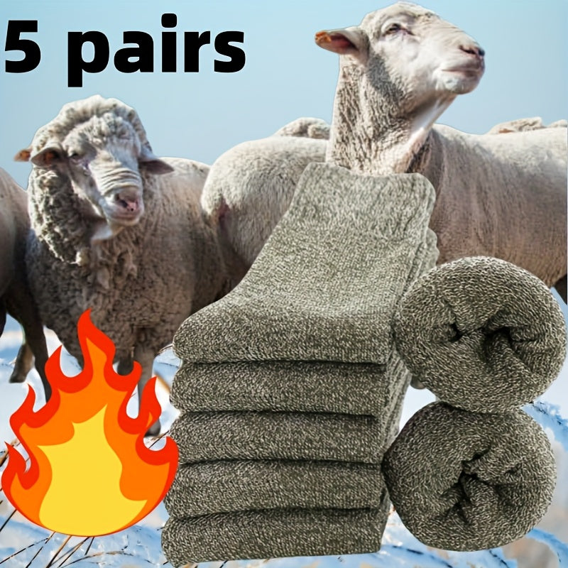 Men's Thick Warm Socks, 5 Pairs, Daily Solid Color Knee-High Winter Men’s Socks
